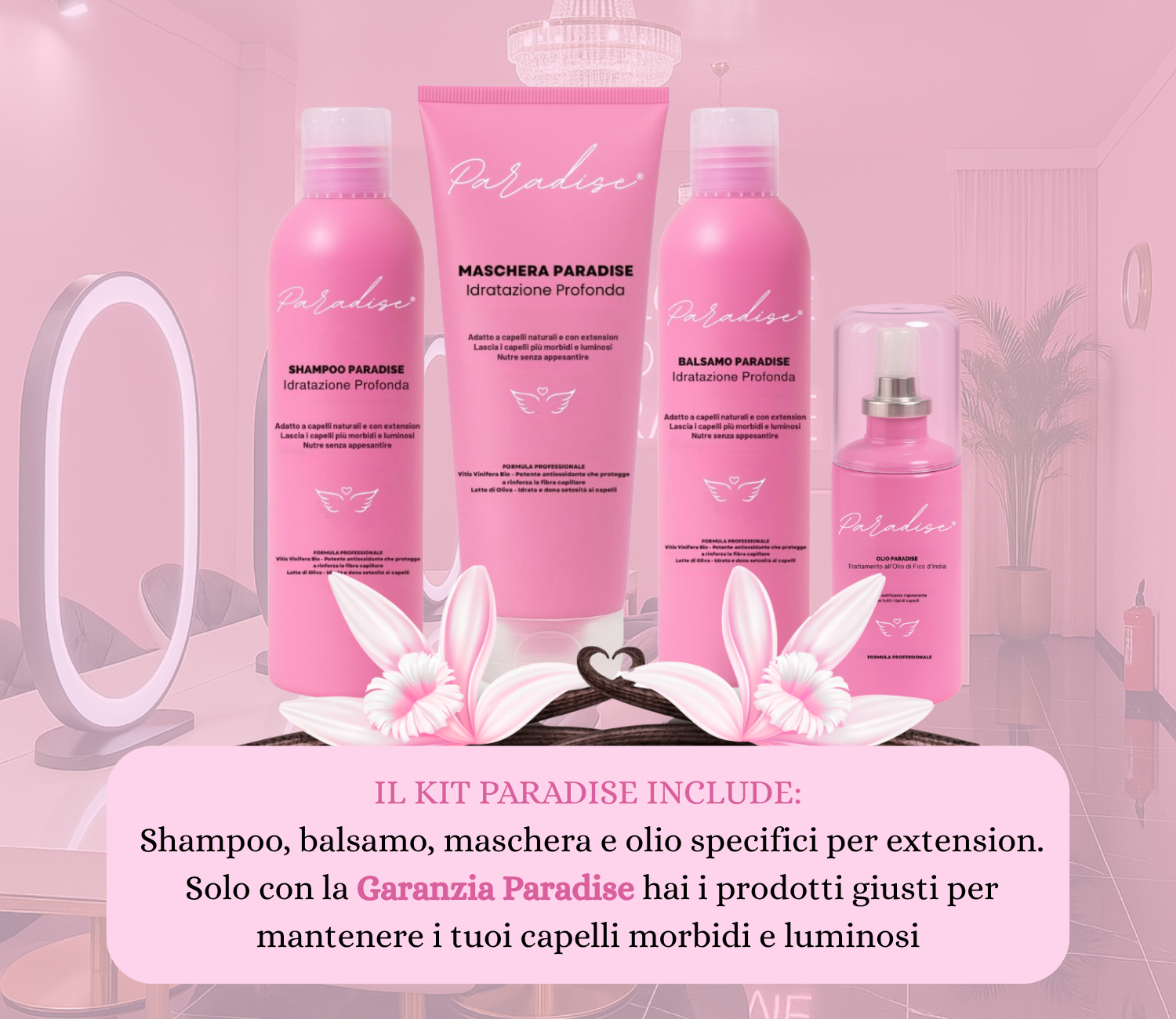 - ✅ Prodotti inclusi: ricevi il Kit Paradise (shampoo, balsamo, maschera, olio).